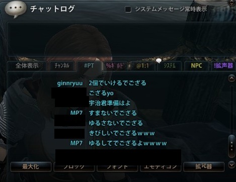 (フレリス入れてると右下にひょこってフレがなんのPT立てたかでる)